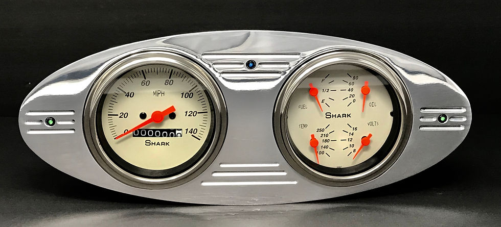 Our new clusters are made to simplify your auto dress up by packaging together the panel of your choice and the gauges of your choice with the car that you have. Panels are available in Polished & Brushed, and gauges are available in Dolphin (Mechanical & Programmable), Shark (Mechanical & Programmable), Metric & GPS. Choose your panel from the list and then choose your options from the panel page. Any questions? just give us a call.